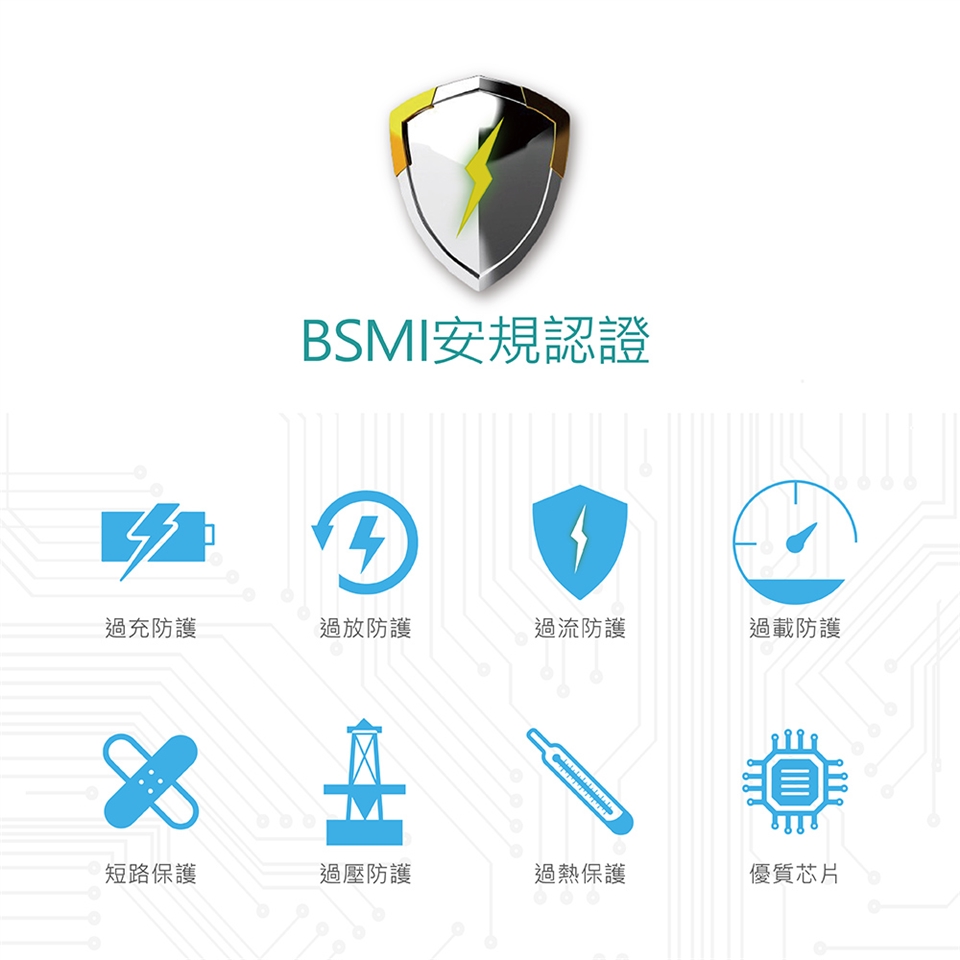2.安規認證防止過充、過載、過壓、過熱、短路,確保設備穩定輸出