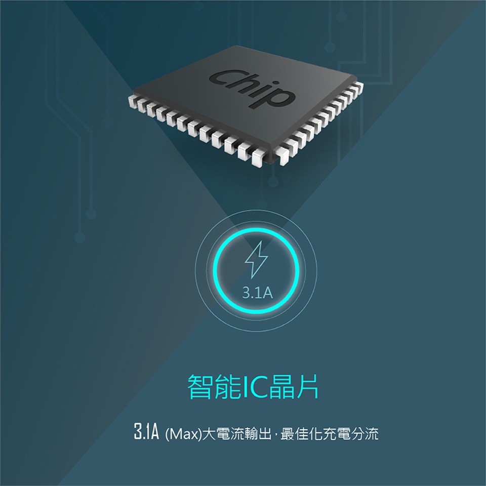 1.不同裝置同時充電時,IC晶片會調整電流,最高輸出可達3.1A