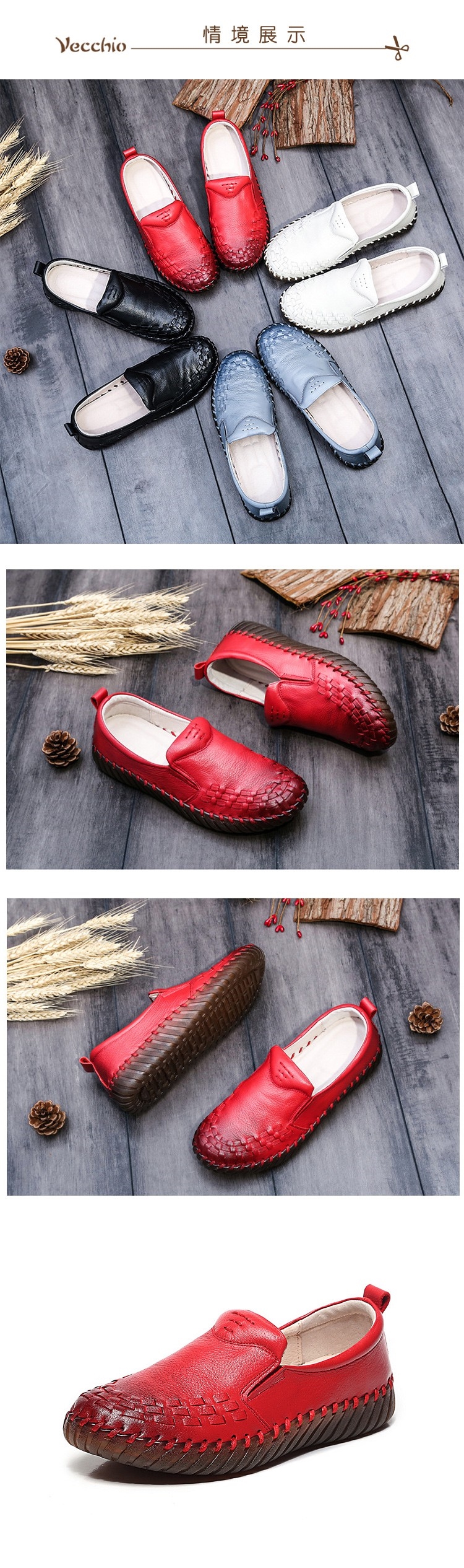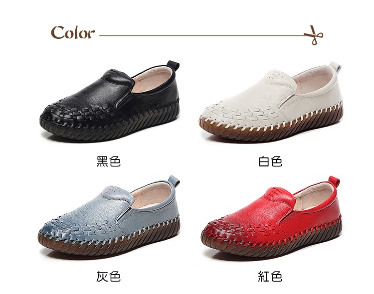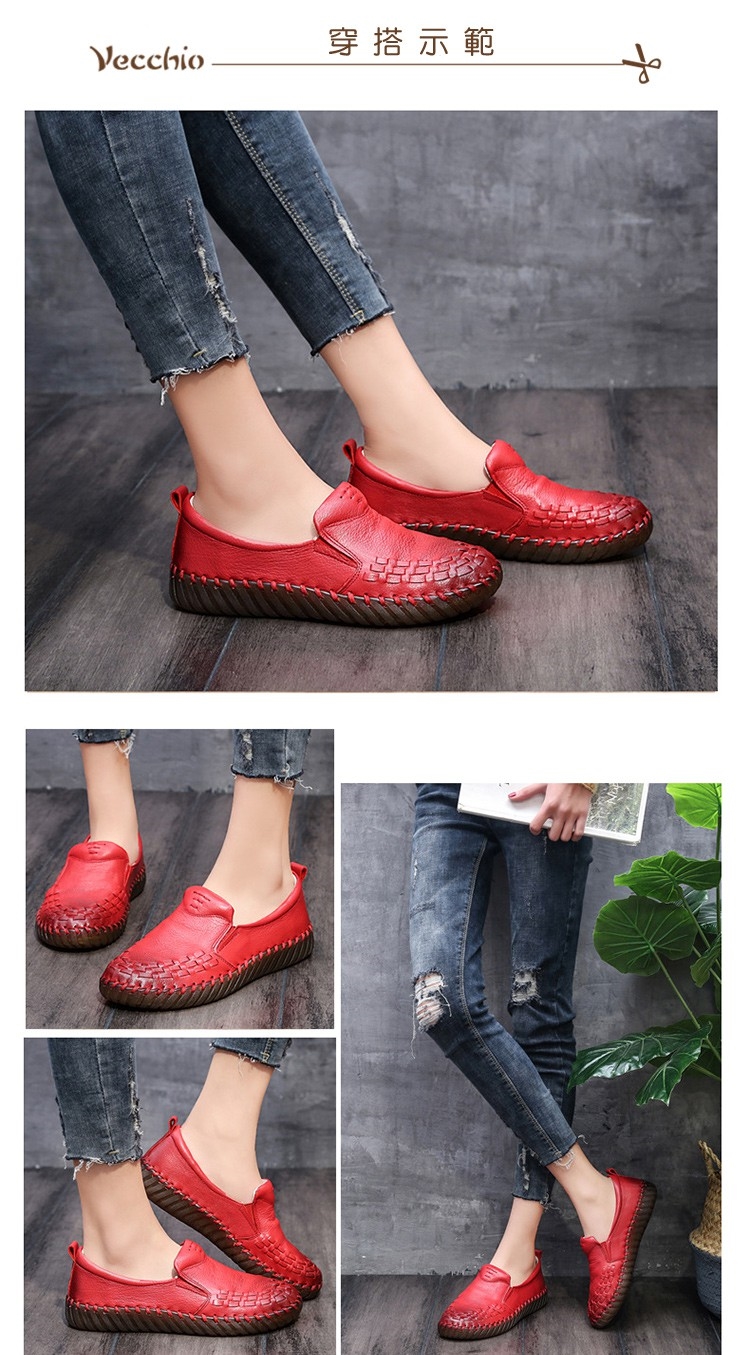 【VECCHIO】休閒鞋 真皮休閒鞋/全真皮頭層牛皮編織線條舒適軟底休閒鞋 紅
