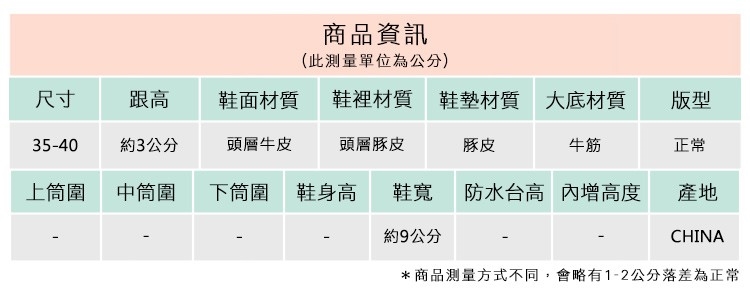2.鞋類商品依功能及用途之不同,鞋底各有其止滑係數之個別不同,使用鞋類商品請用於正常平坦之路面,非雨鞋或雨靴類商品,請避免穿著於下雨濕滑路面上行走。