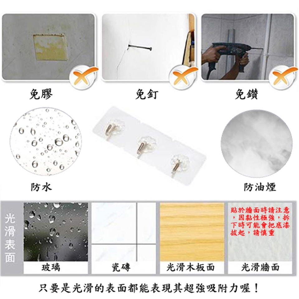 ■採用進口背膠黏性更強,約可耐重15kg(請選擇適當之掛勾場所,請勿掛易碎及貴重之物品,避免掉落損失,及砸到其他物品或傷人)。