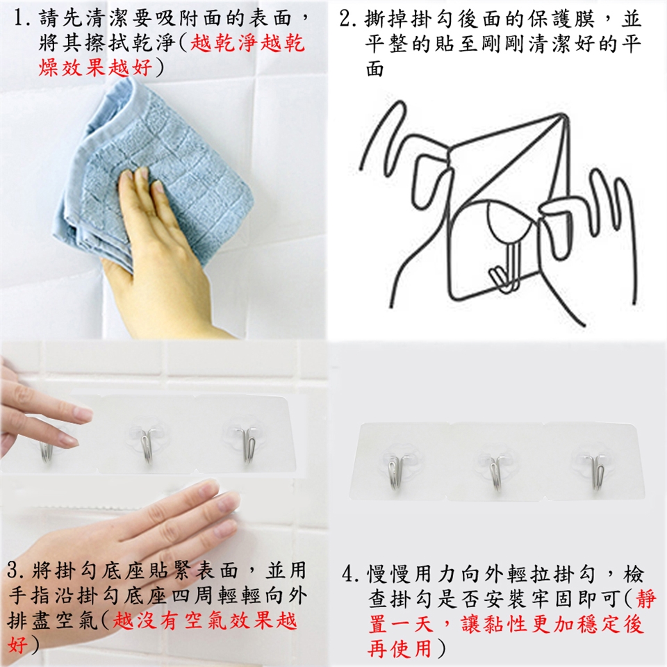 1.請選擇適當之掛勾場所,請勿掛易碎及貴重之物品,避免掉落,及砸到其他物品或傷人。