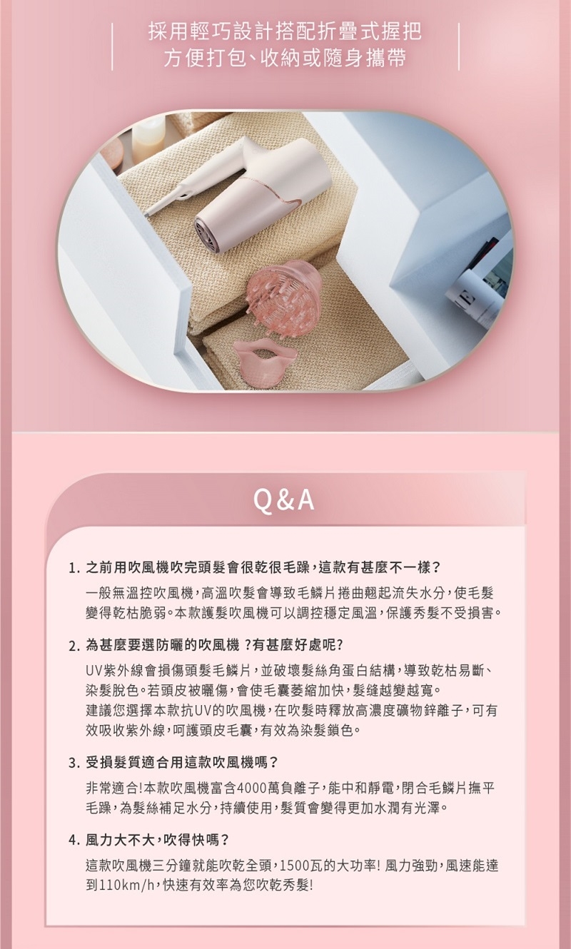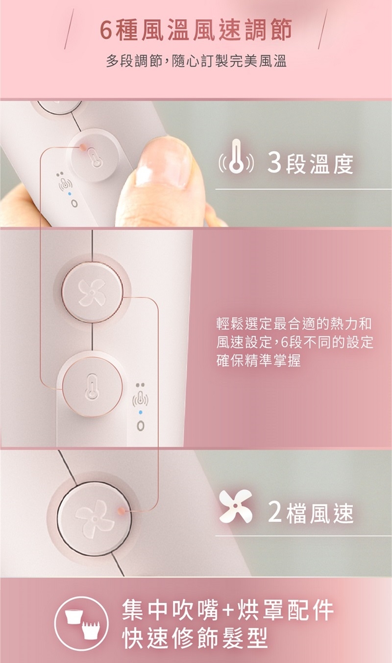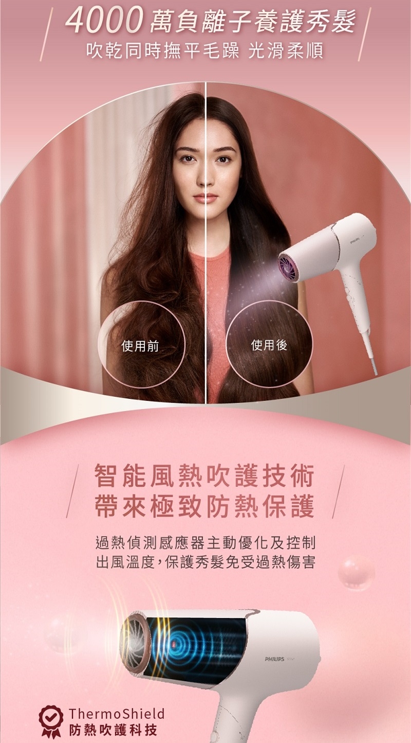 【Philips飛利浦】BHD538/01智能護髮礦物負離子吹風機(玫瑰粉霧)