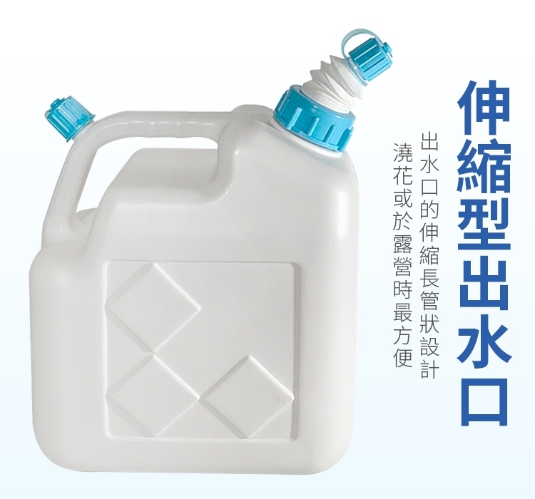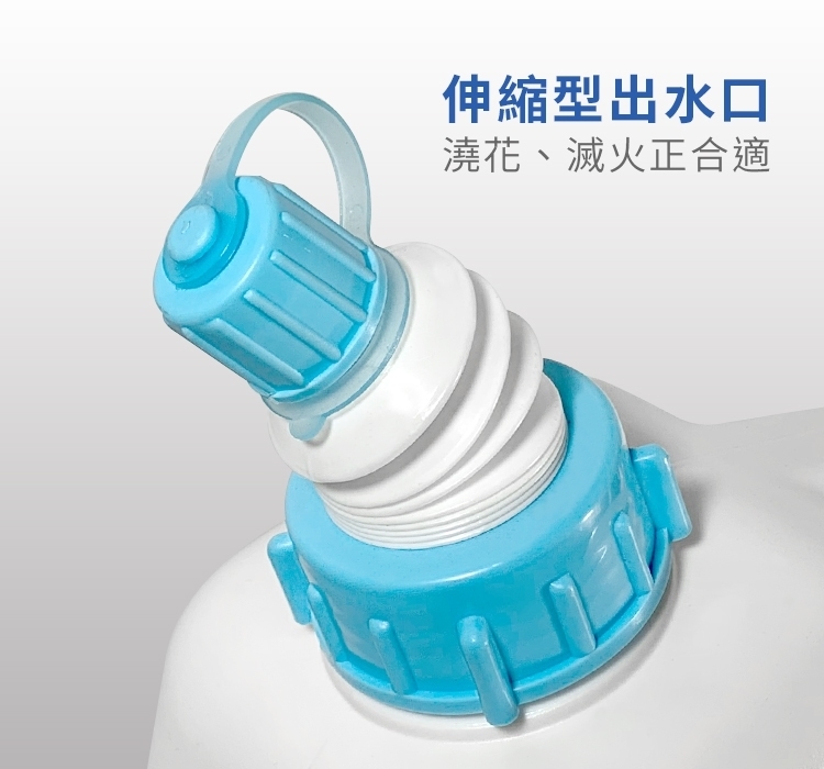 出水口可伸縮長管狀設計,澆花或於露營時滅火最方便