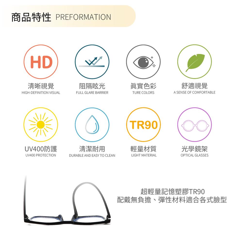 濾藍光鏡片阻隔有害光,抗UV400有效阻隔紫外線傷害。