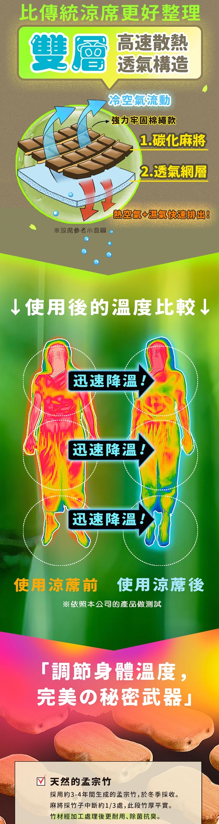 表層材質 : 天然孟宗竹竹片