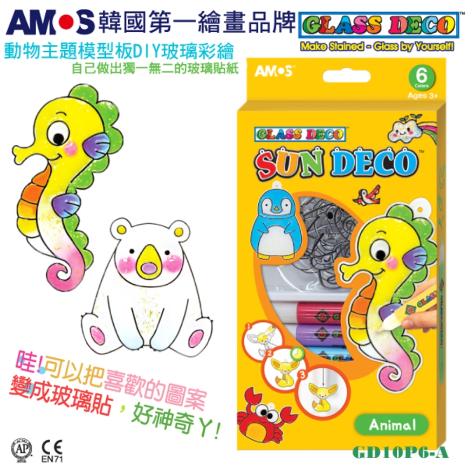 韓國AMOS 6色動物主題模型板DIY玻璃彩繪膠(台灣總代理公司貨)