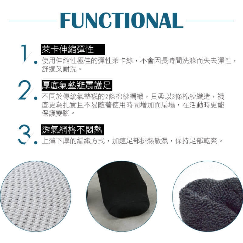 氣墊襪底耐磨吸震,護足降低運動傷害