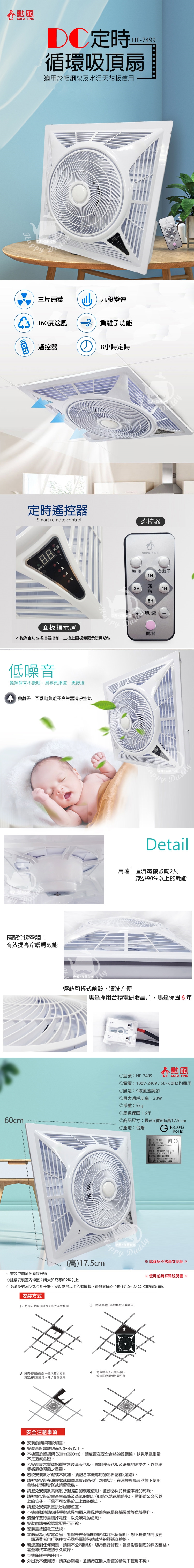 勳風 14吋 DC可定時負離子循環吸頂扇(負離子)HF-7499