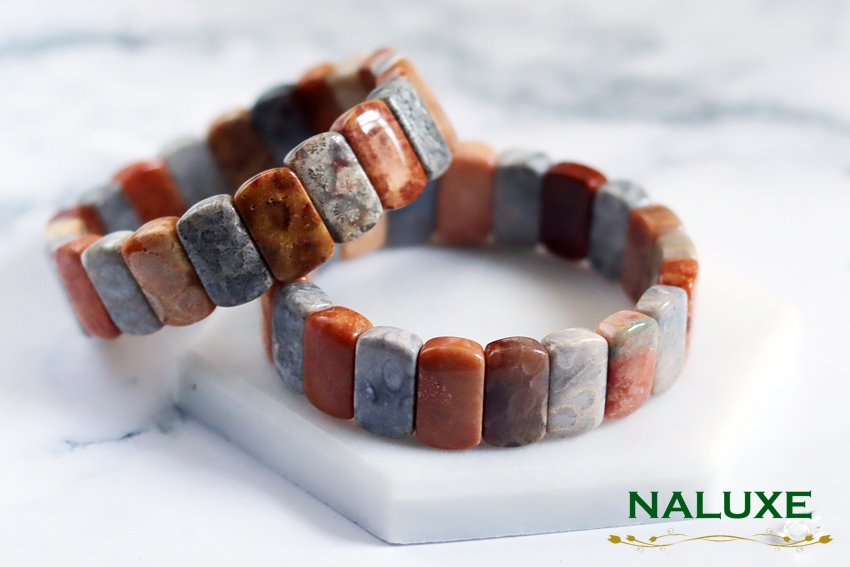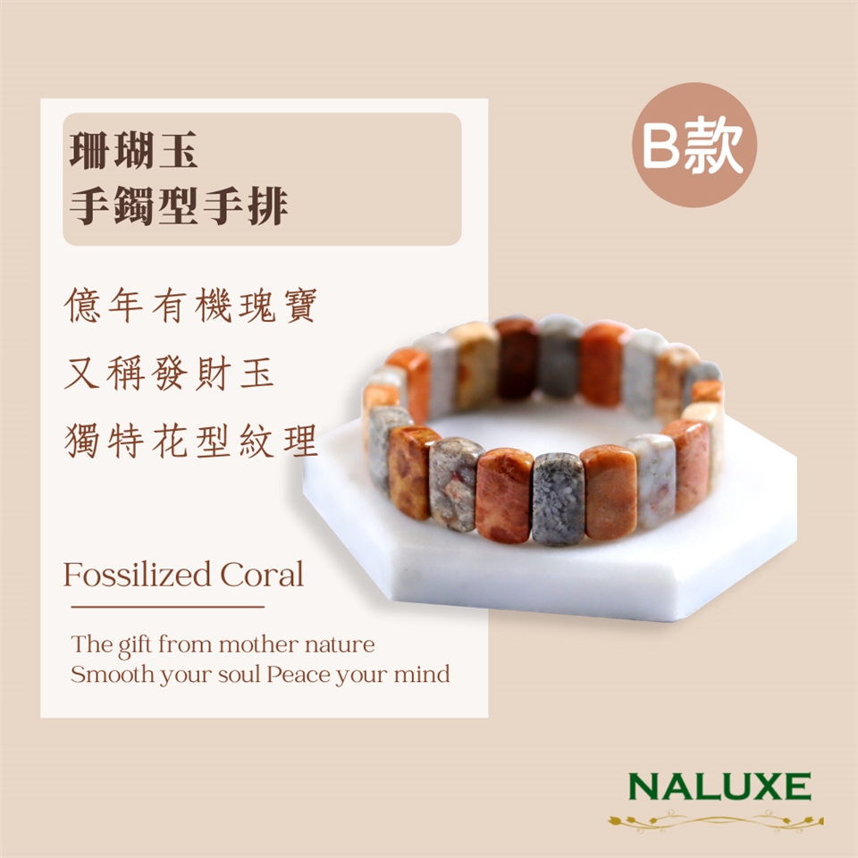 以手排方式讓珊瑚玉,可以較大面積的呈現其最美的截面,每一片上都可以完整的欣賞到珊瑚歷經億