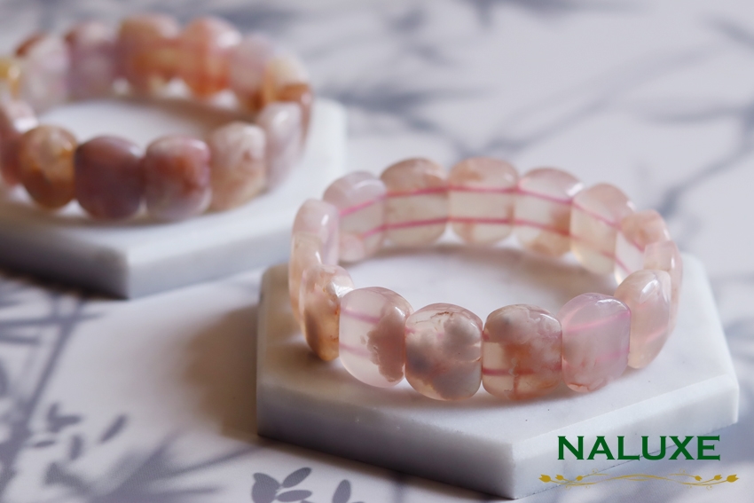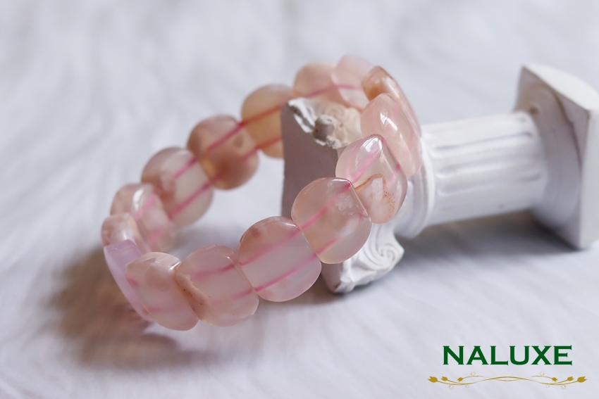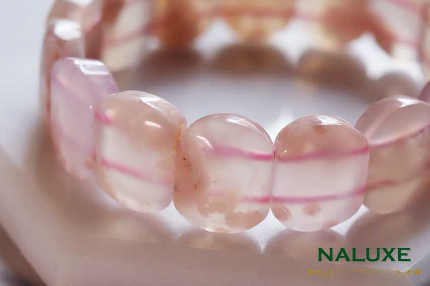 瑪瑙品種繁多,其中一種瑪瑙充滿溫柔優雅之美,它便是來自馬達加斯加的櫻花瑪瑙。高品櫻花瑪瑙水晶呈現晶瑩剔透感,晶體內含粉白色、猶如朵朵盛開之櫻花的共生礦,形態獨一無二,也是櫻花瑪瑙這個美稱的由來。
