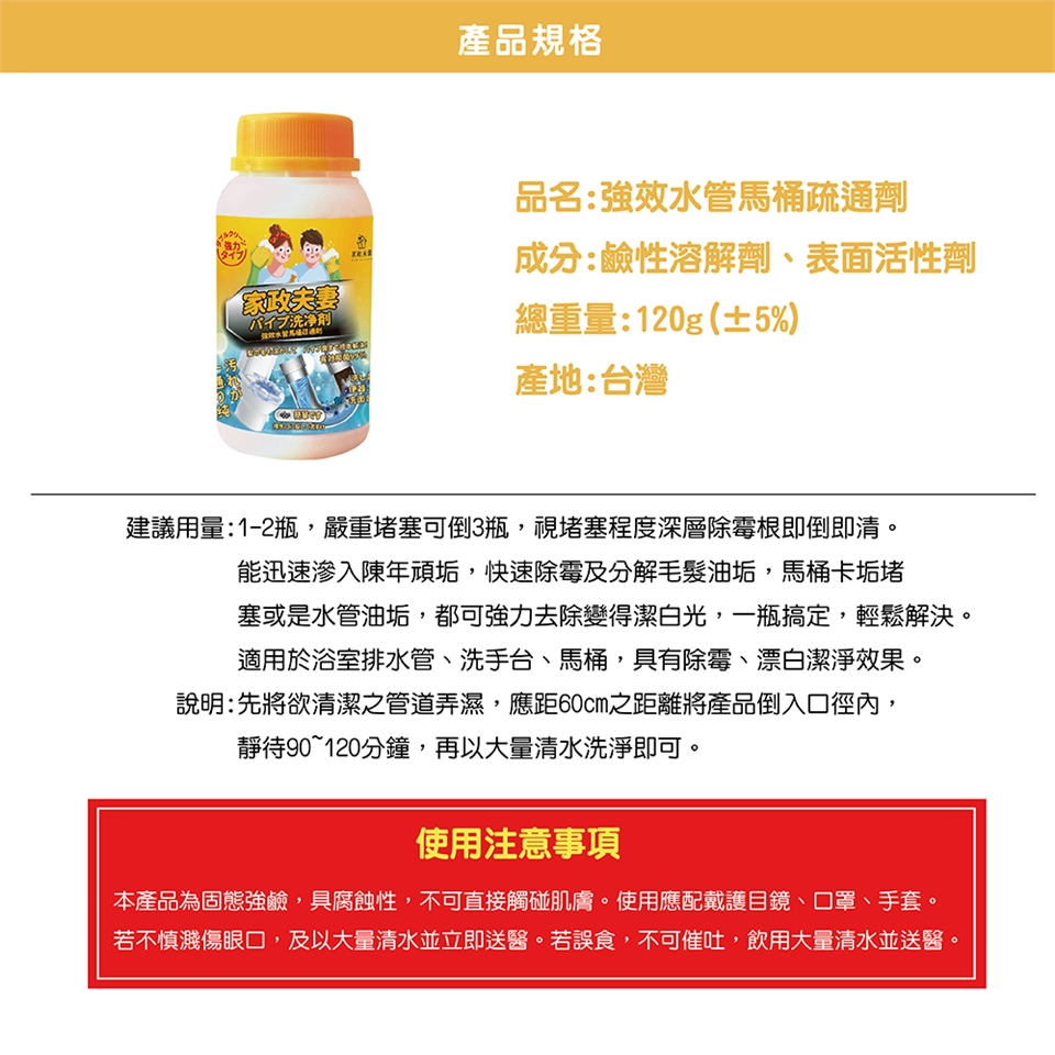 本產品馬桶水管疏通劑, 不得與其他清潔劑混合使用!! 請特別注意!!