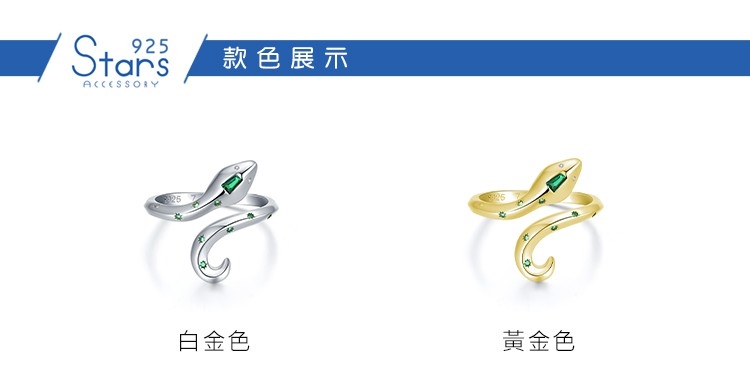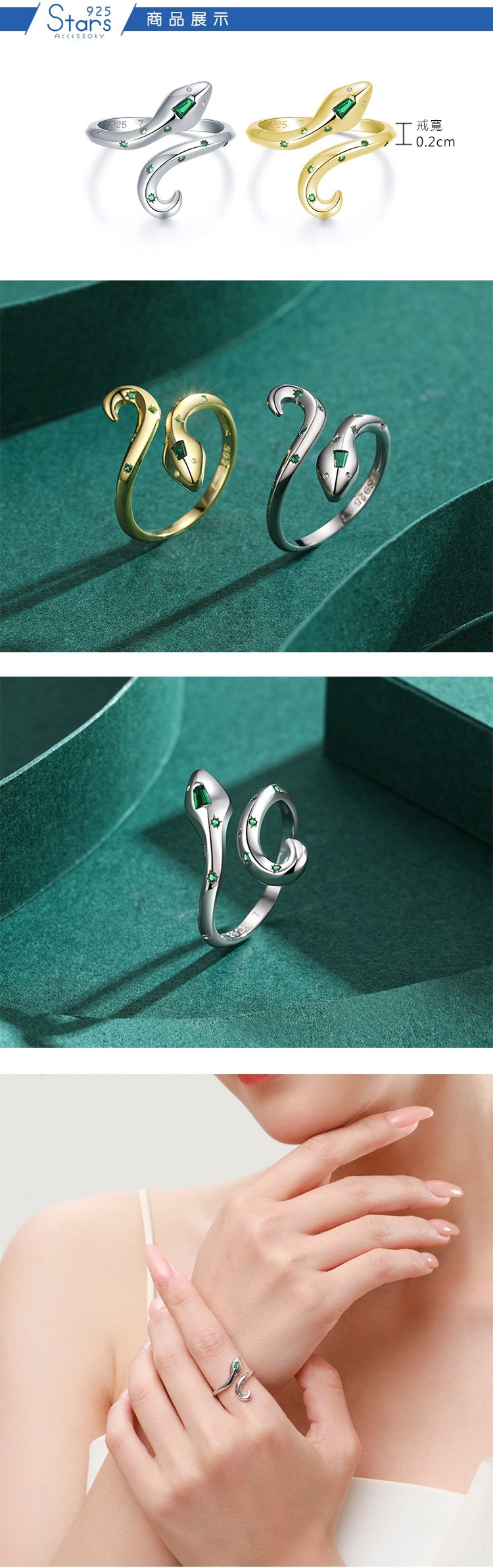 【925 STARS】純銀925輕奢微鑲鋯石蛇形戒指 開口戒 純銀戒 造型戒 情人節禮物 (2款任選)
