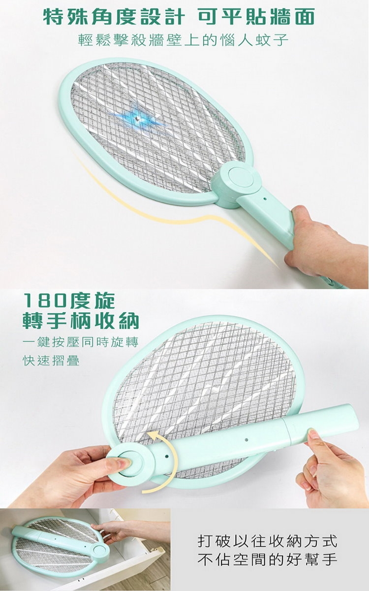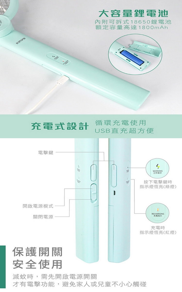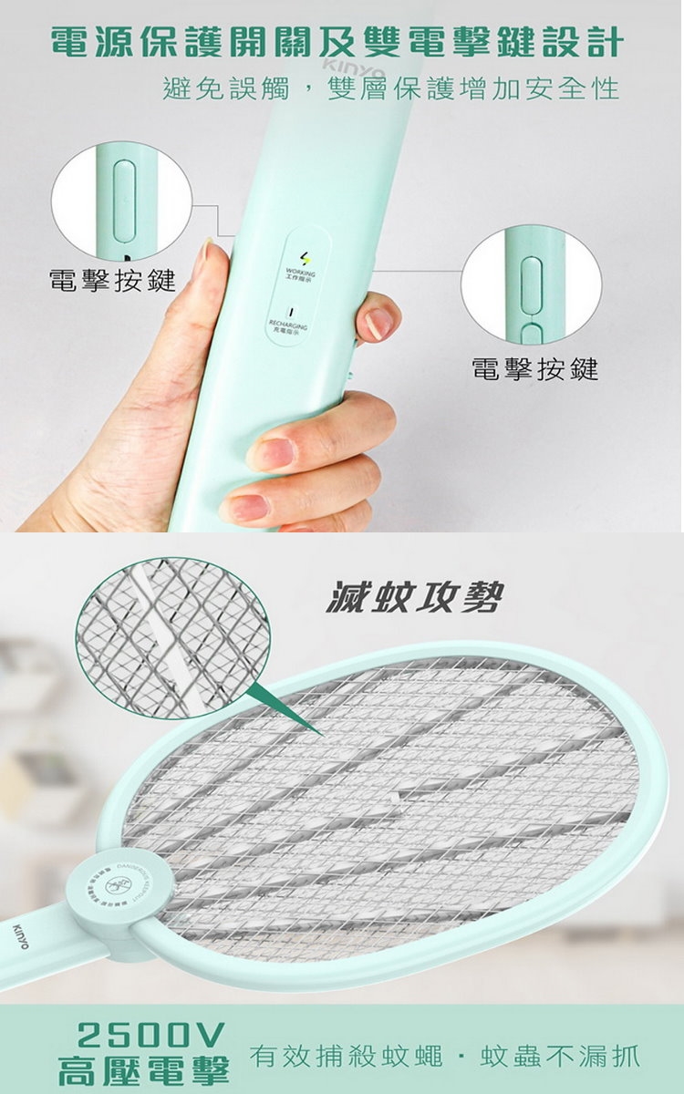 【KINYO】USB充電式雙按鍵折疊電蚊拍(CM-3385)