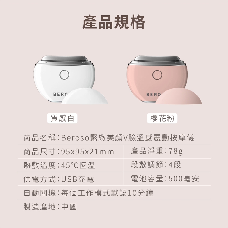 商品名稱:Beroso倍麗森 緊緻美顏溫感震動按摩儀