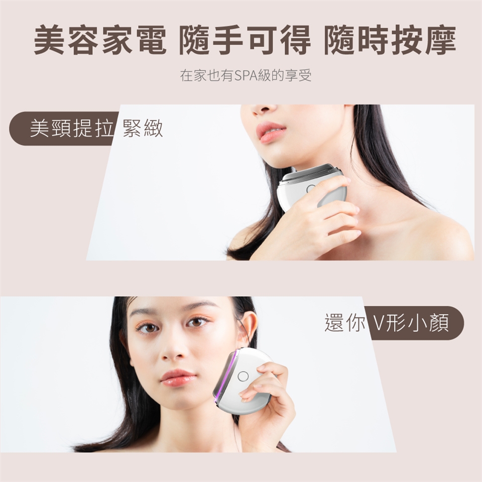 結合溫感與震動按摩,有效進行臉部肌膚護理,提升輪廓線條,打造緊緻V型小臉,增強自信美麗。