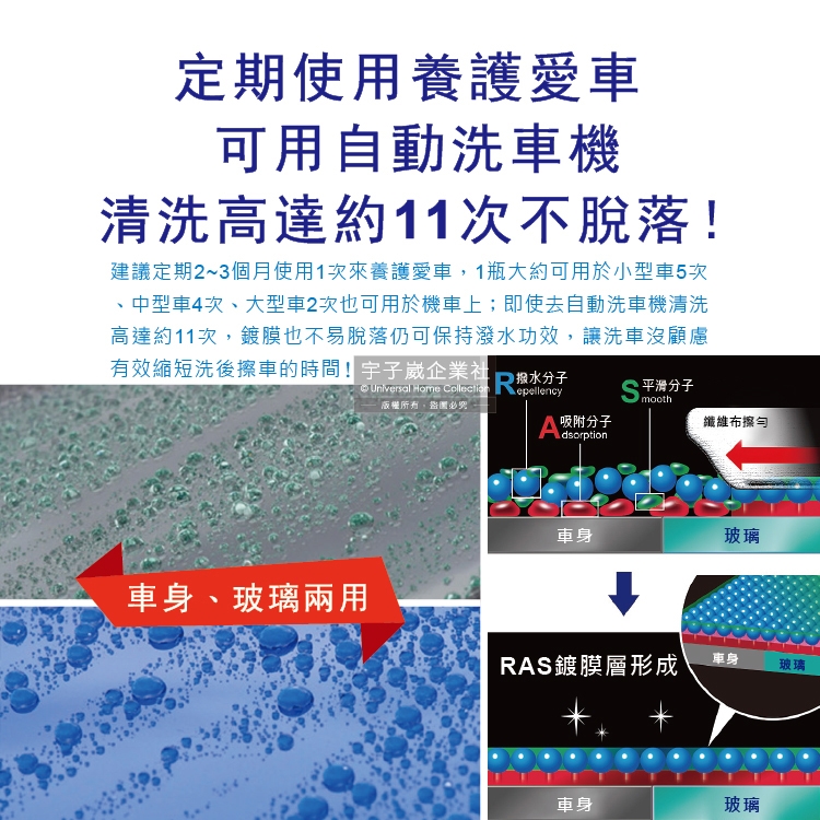 用途:使用於車身、玻璃、汽車輪圈、車頭燈罩、未噴漆樹脂製品、晴雨窗、水箱護罩格柵、後視鏡表面。