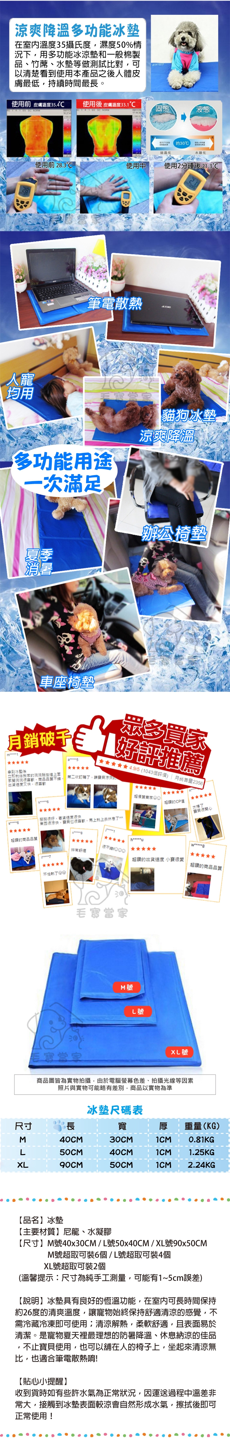冰墊具有良好的恆溫功能,在室內可長時間保持約26度的清爽溫度,讓寵物始終保持舒適清涼的感覺,不需冷藏冷凍即可使用;清涼解熱,柔軟舒適,且表面易於清潔