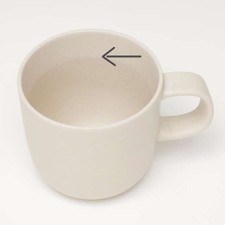 ●馬克杯內有設計弧度,圖內所指的界線安全容量大約可沖一杯份量12克的咖啡粉(約130ml)。