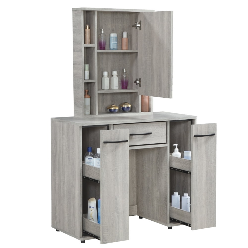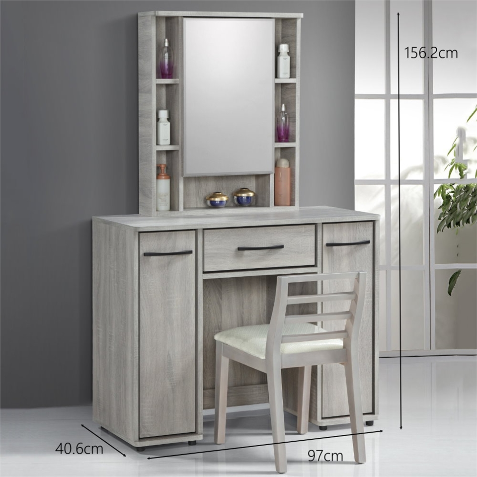 化妝台上座門片採用油壓鉸鍊