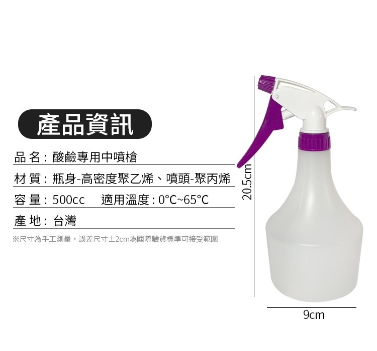 材 質: 瓶身-高密度聚乙烯、噴頭-聚丙烯