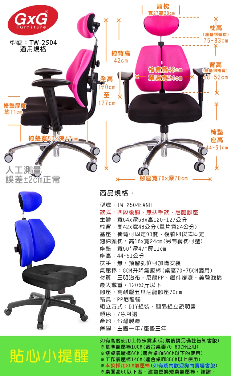 購買注意事項:本座椅高度,均以搭配標準桌高70~75CM使用。