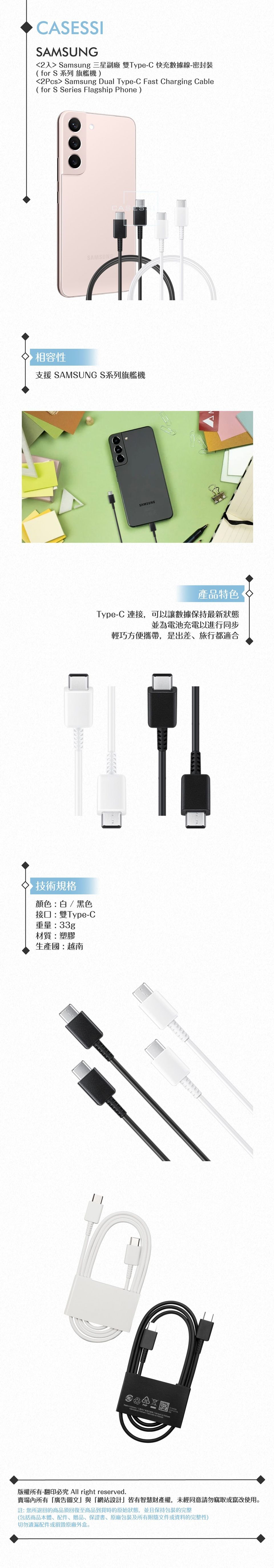 商品名稱:Samsung 三星製造 雙Type-C 快充數據線 ( for S25 S24系列 )