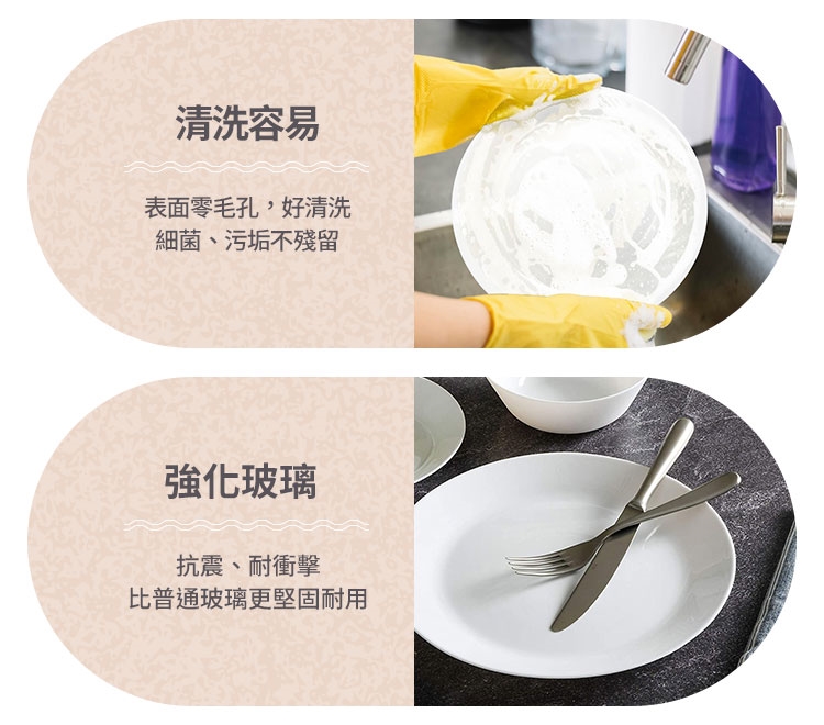 ※新的康寧餐具表面有一層透明的保護層,使用前請先清洗乾淨。