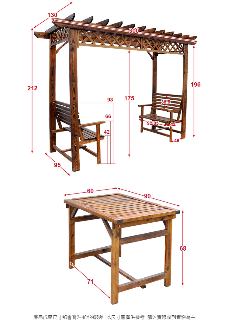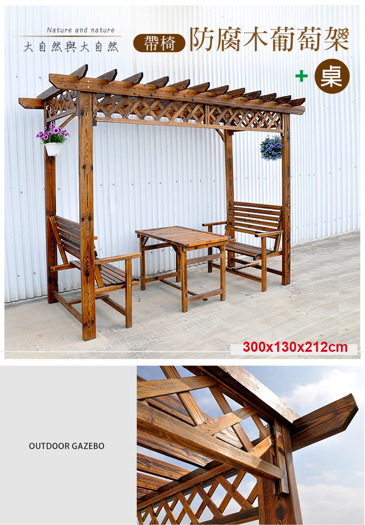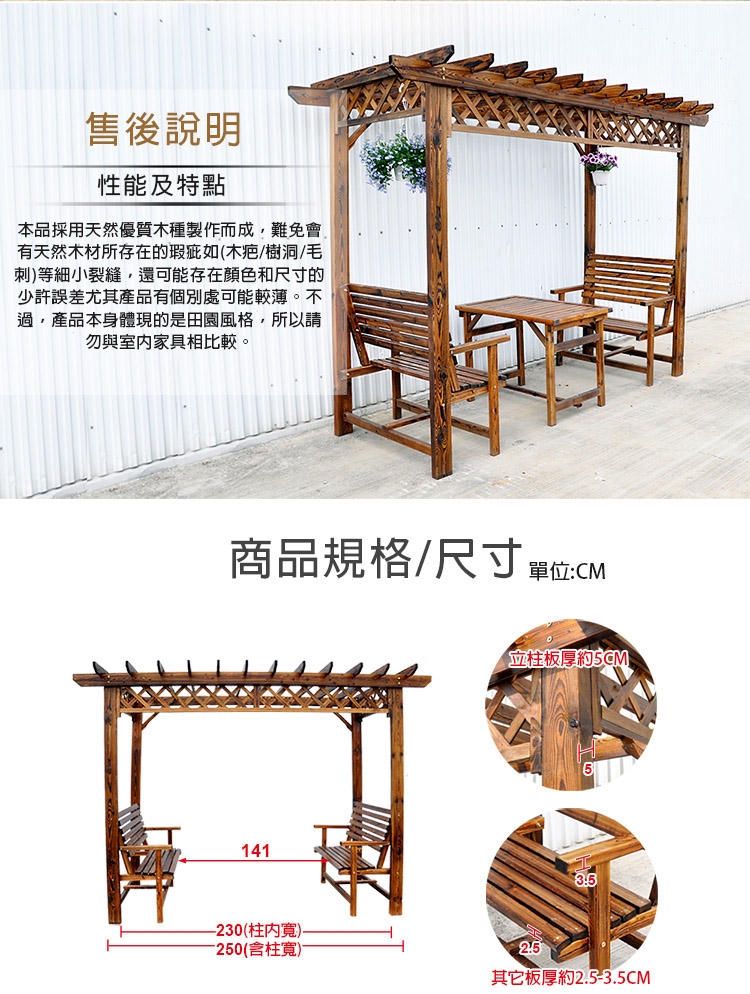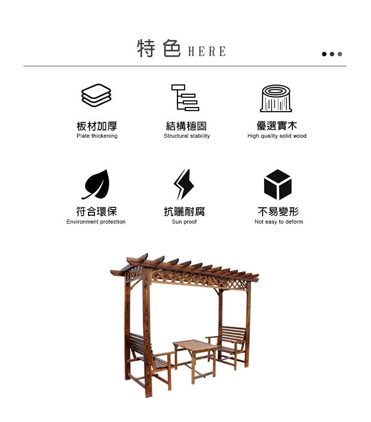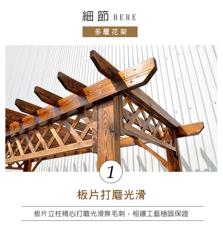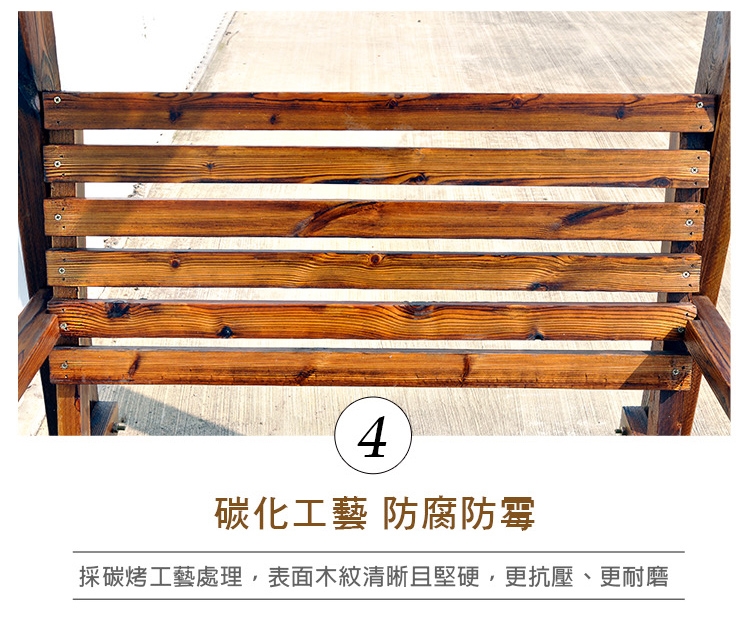 ★全實木經碳化防腐、防水、防蛀、防腐處理,有著天然清晰實木紋理