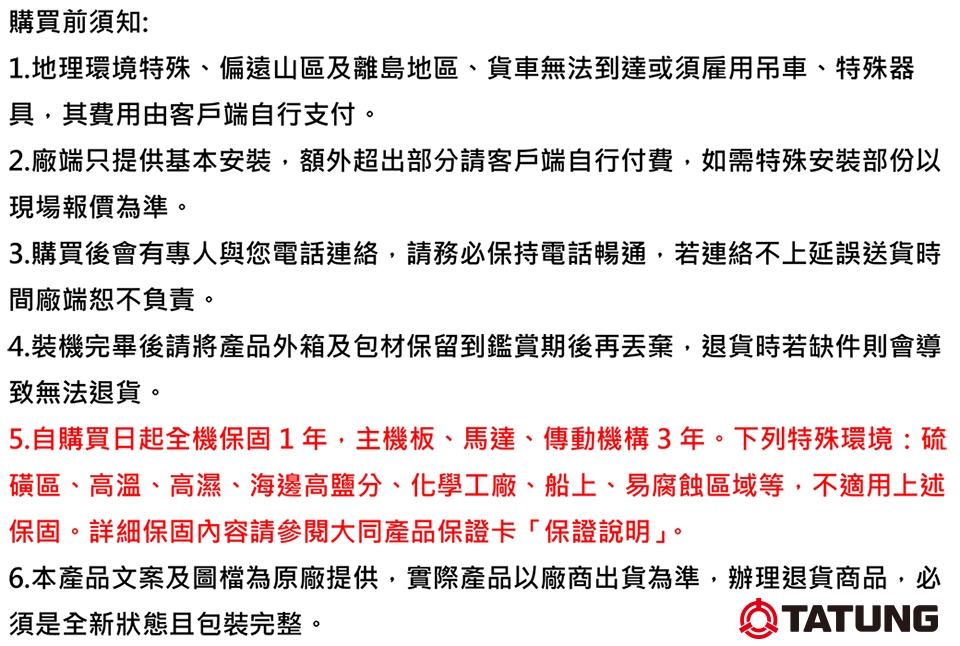 3.針對大型家電,我們將於完成收款確認後,將會有專人與您確認相關配送細節等的聯繫。