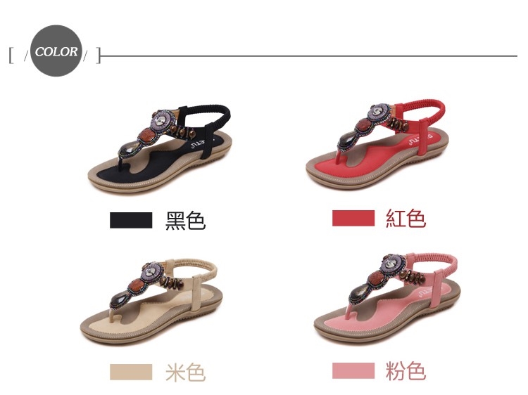 【queena】涼鞋 夾腳涼鞋/波西米亞風魅力手工串珠T字舒適厚底夾腳涼鞋 粉