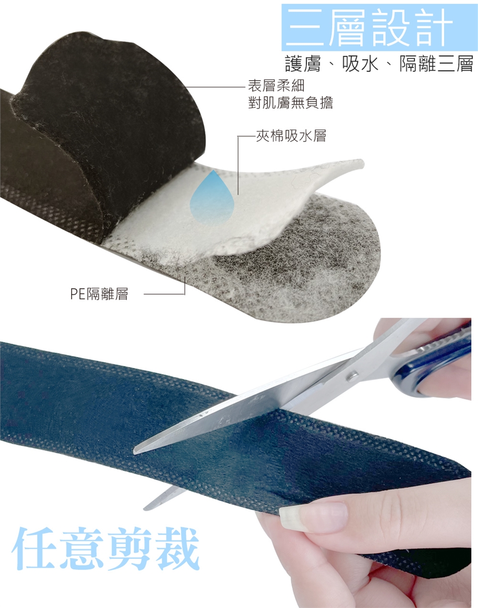 來片高分子衣帽吸汗貼,讓領口帽沿不在受汗漬侵蝕!
