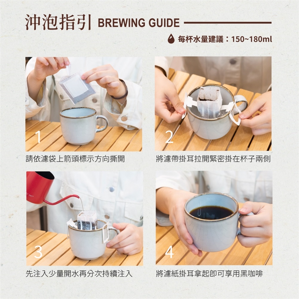 ●請將濾掛雙面的掛耳拉開掛於杯緣兩側上