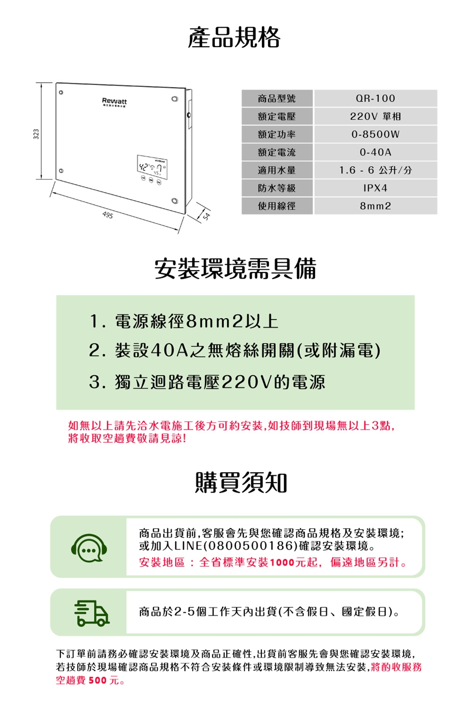 安裝須知 ( 加購服務 )