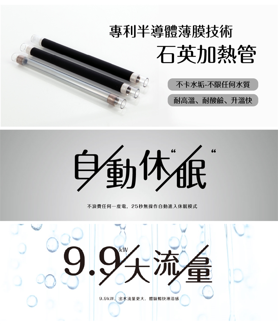 9900W;加大水流量;洗澡體驗更加暢快