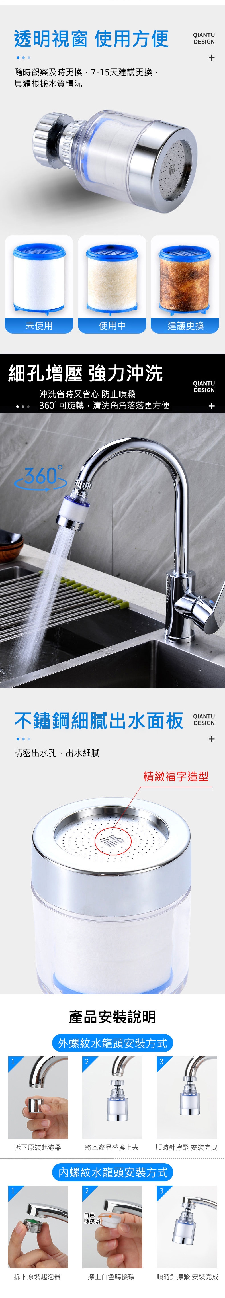 配件:水龍頭過濾器×1、過濾棉×1(已放在過濾器裡)、轉接環×1