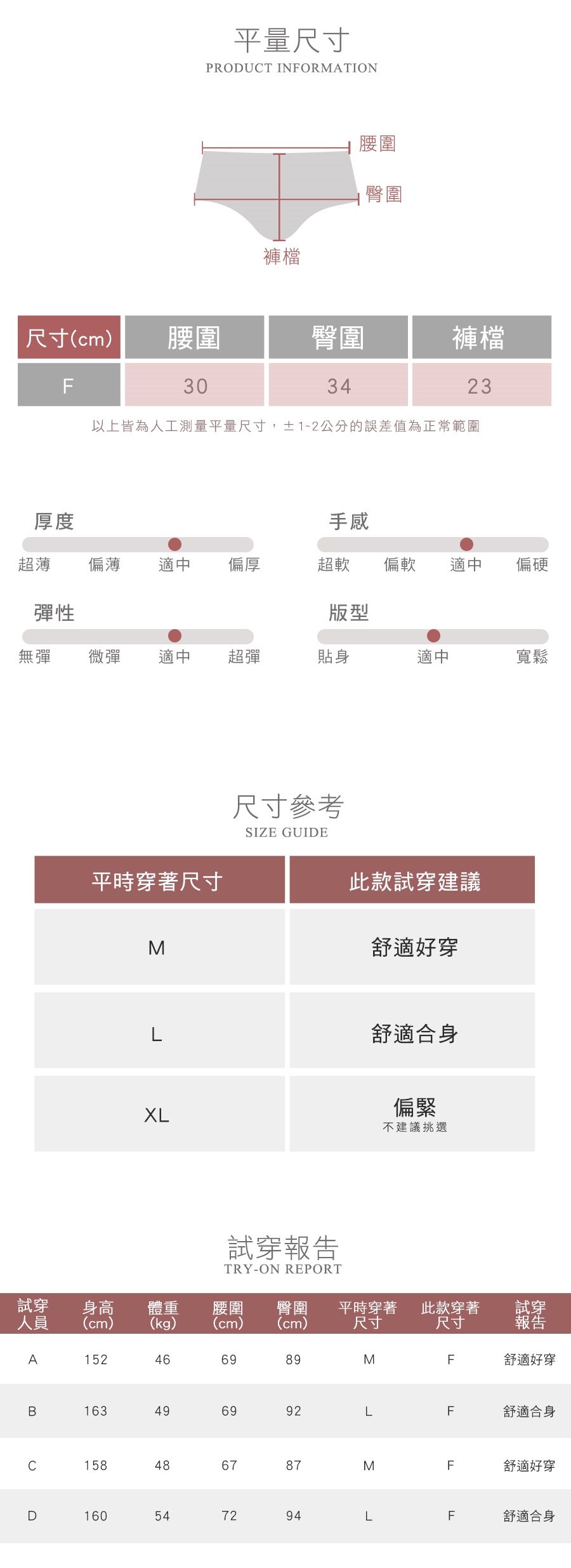◆本尺寸對照表標示僅供參考,實際尺寸以實品為準。
