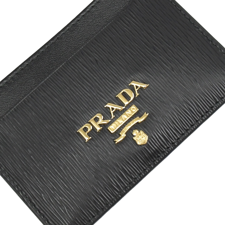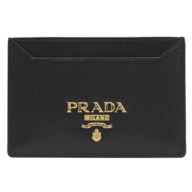 PRADA 專櫃熱銷經典改版新款,採用耐用水波紋皮革搭配金屬LOGO,開放式開口,外2信用卡夾供收納,最佳的時尚小配件,美觀持久耐用的品味小配件。