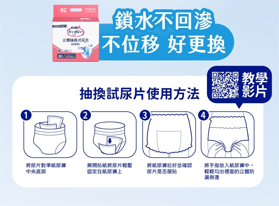 ※使用後請將尿褲上的排泄物,倒入馬桶清理後,將髒汙部份由外側向內側捲起,再行丟棄