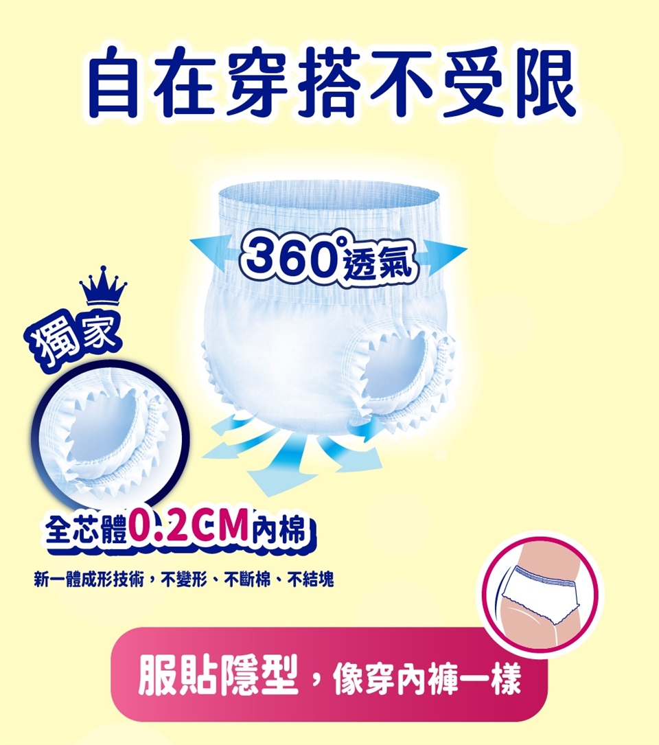 0.2cm吸收體,更薄更貼身,服貼於臀部