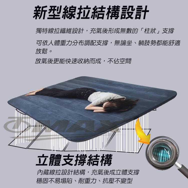 9.充氣床高度可有效隔絕地面濕氣,進而維持睡眠品質,不論戶外野營、或居家臨時床鋪皆是最佳選擇