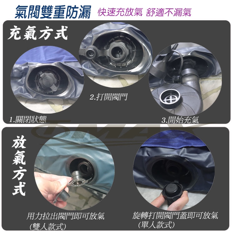 6.進氣孔逆止閥設計,充氣及排氣2合1氣嘴