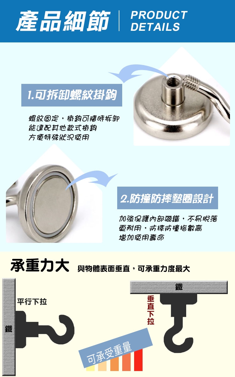 06.承重數據皆為垂直承重,側掛承重只有垂直吸力的1/5 ~ 1/10