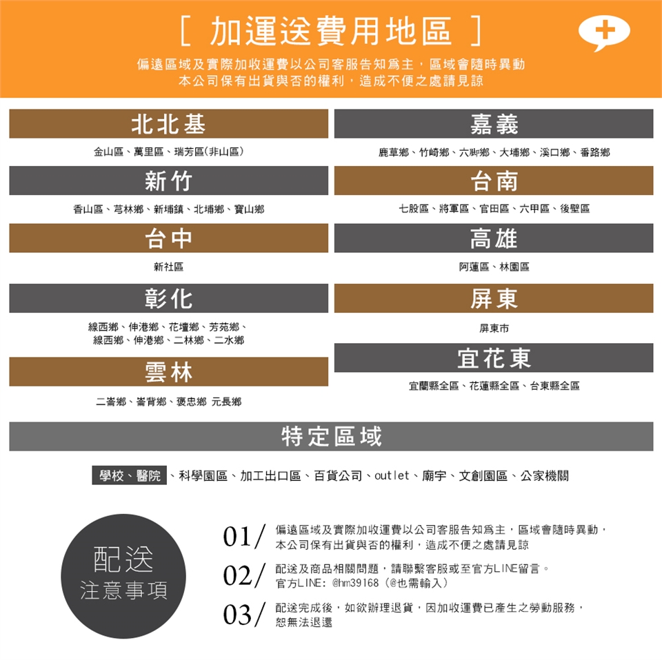 5. 配送偏遠將會收取聯運費用,會事先與消費者聯繫報價。