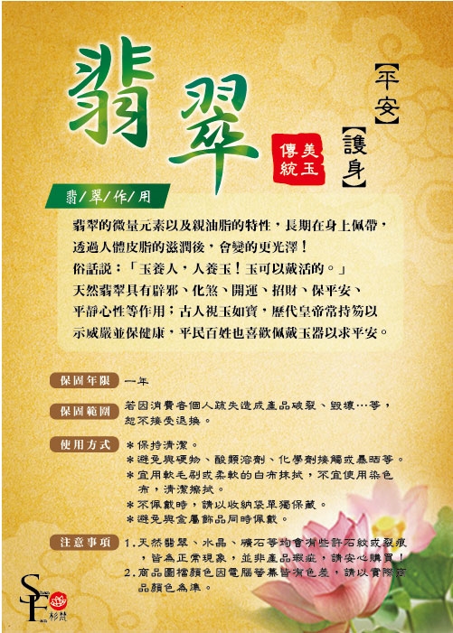 注意事項:1.天然翡翠、水晶、礦石等均會有些許石紋或裂痕,皆為正常現象,並非產品瑕疵,請安心購買!