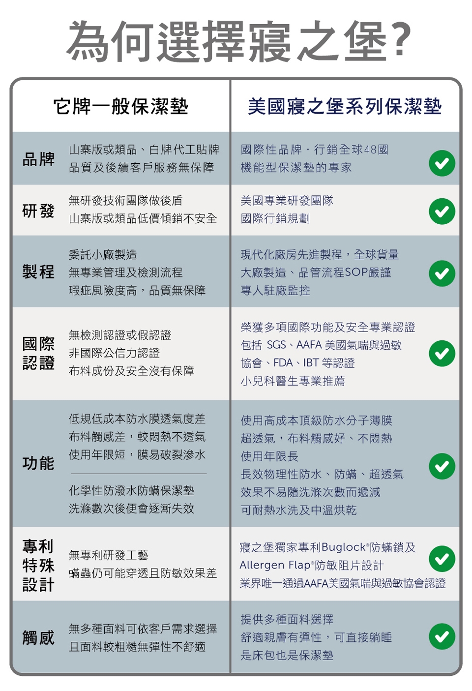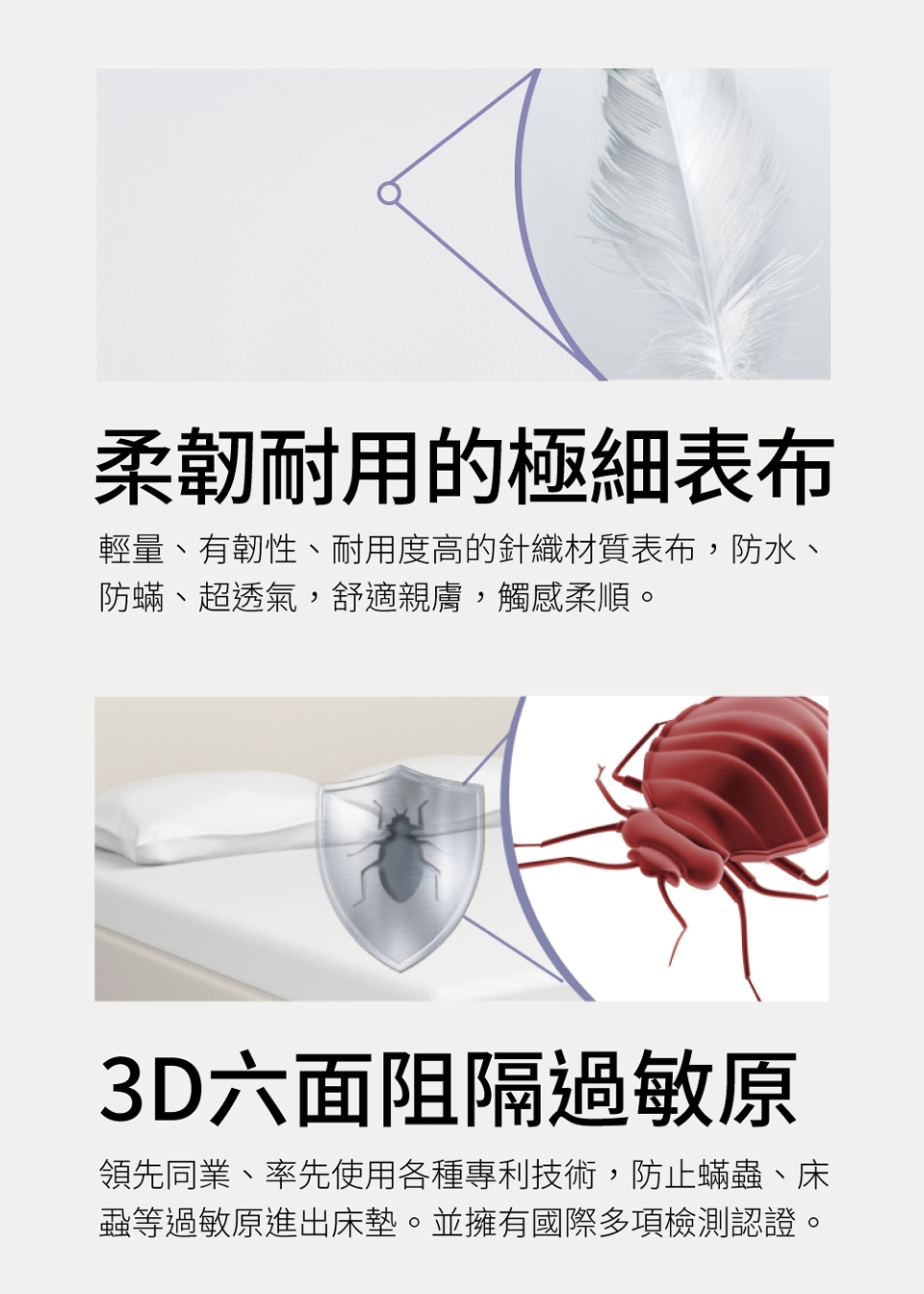 ☆預防蟎蟲、床蝨等過敏原在床墊內滋生