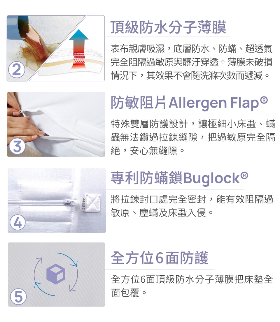 ☆6面頂級防水薄膜,超薄透氣防水防螨