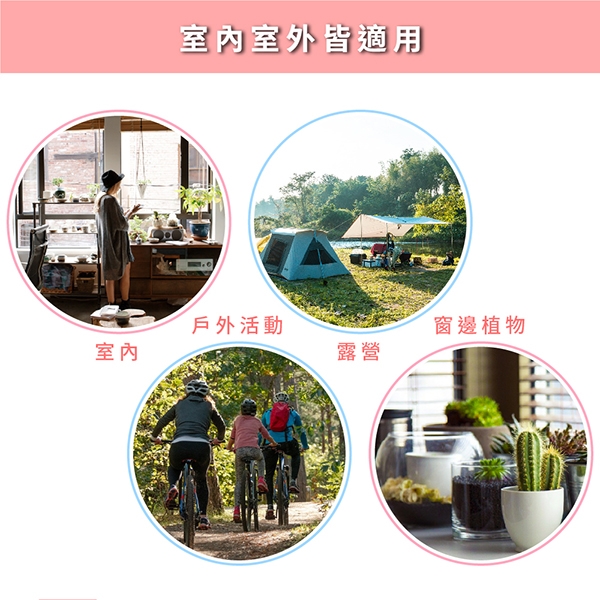 2. 使內使用1-2片適用2-4坪(13平方公尺)大小空間,較大空間請使用2個以上之網片。室內使用時,若人、寵物停留室內,請保持空氣流通,室內使用每天不宜超過8小時。