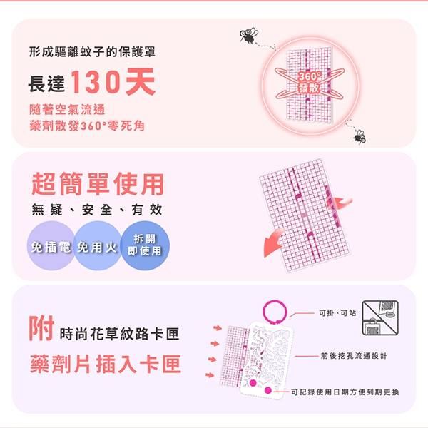 1. 本品選用除蟲菊精"美特寧"成分,在常溫下即可揮發,達到防治蚊子的效果。