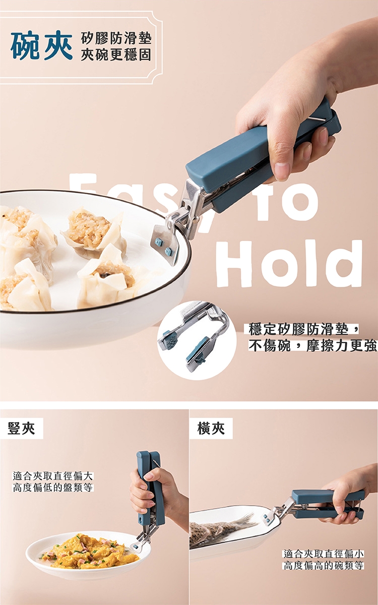 碗夾外加工矽膠防滑墊,夾碗穩固不掉落